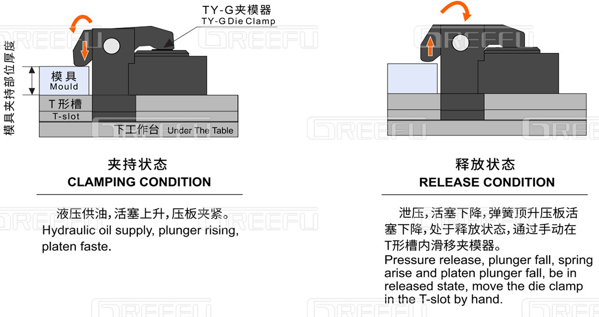 TY-G 夾模器:應對夾持部分厚度存在偏差幅度高達±10mm,無需費時費力安裝墊片。