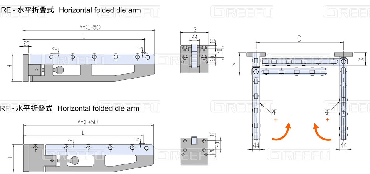 E / F : 水平折疊式