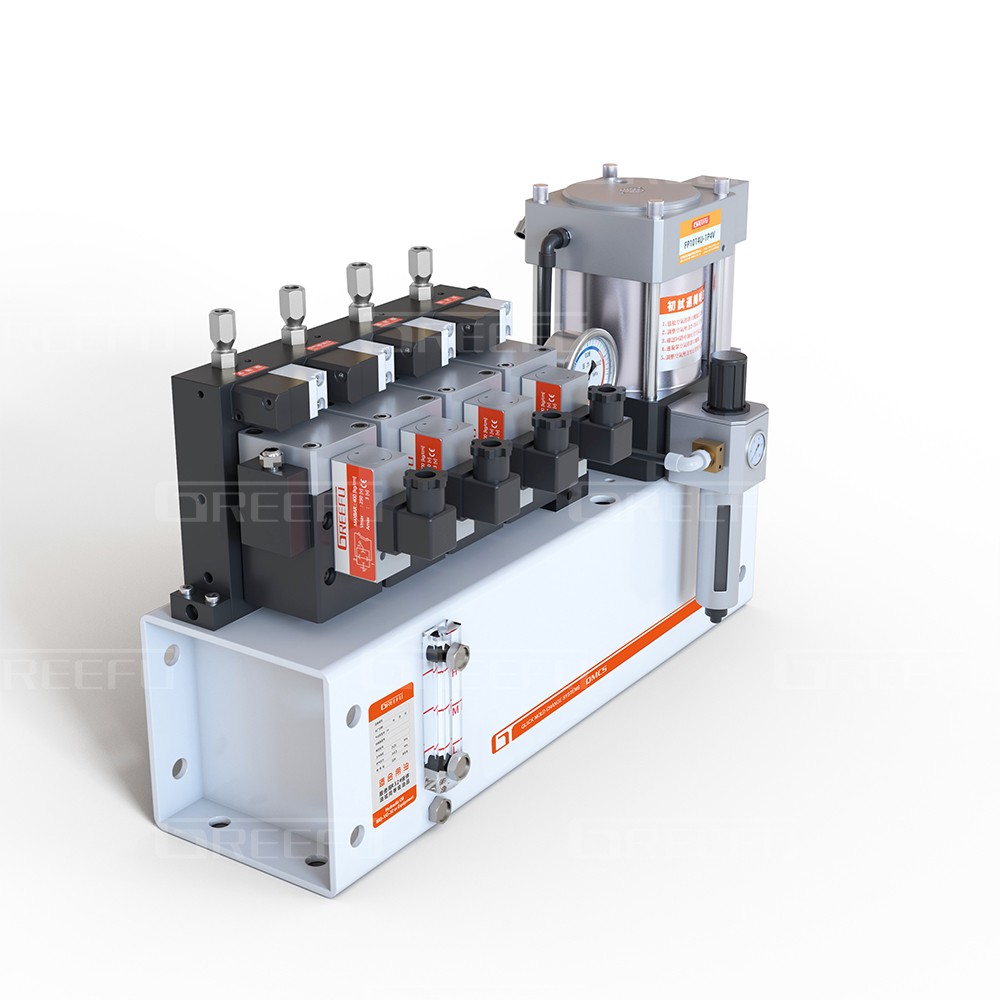 氣動式油壓單元FP1014,利用空氣壓力驅動泵浦, 由單體泵、壓力開關、電磁閥、氣控閥、 氣源處理器、油箱等組成
